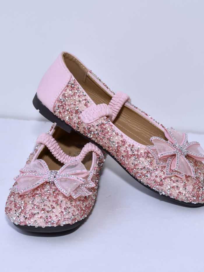 SparkleSteps Pink Beaded Flats with Decorative Bow